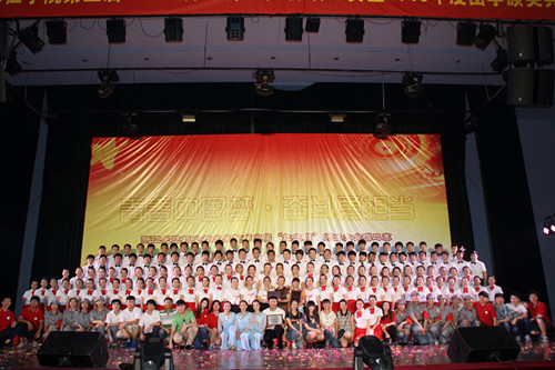学院执行院长吕振合教授,正院级巡视员洪永铿教授,副院长杜宝山教授,党委副书记、副院长王其军教授,党委委员、工会主席洪骏副教授,党委副书记张乐弟等学院领导及中层领导出席了本次活动。学院2000多名学生以及各兄弟院校学生代表共同观看了此次比赛。我院八个系参加了本次比赛,第一支出场的商务系代表队以一首慷慨激昂的歌曲——《我的祖国》拉开了整场比赛的序幕。计信系的一首《精忠报国》激起了现场师生们的雄心壮志,他们激情的演唱把比赛推向了高潮。第八支参赛队会计系以振奋人心的诗朗诵先声夺人,紧接着又以一曲激情澎湃的《没有共产党就没有新中国》震撼全场,感人的歌声把我们带回到斗志斗勇,保卫国家的峥嵘岁月。最终,会计系凭借着激情的演唱勇夺本场比赛的桂冠,计信系与管理系分获二、三等奖;财管系和建工系分别荣获组织工作奖和精神风貌奖,语言系、商务系和贸易系荣获优秀奖。