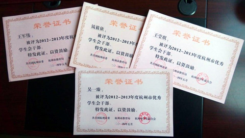 我院学生会及会计系学生会被评选为2012—2013年度杭州市学生会工作先进集体。王军伟、王莹琪、钱筱依、吴一臻等四名同学被评为2012—2013年度杭州市优秀学生会干部。(院团委供稿)
