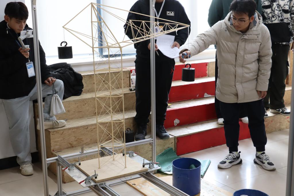 比赛采用省赛原题《自行式塔吊的设计与模型制作》,要求参赛选手利用指定材料,设计制作一个拉索桥模型结构并通过加载测试。评委会专家根据理论方案、模型制作、陈述与答辩、加载试验等方面进行评选,给出最后评分和意见。
