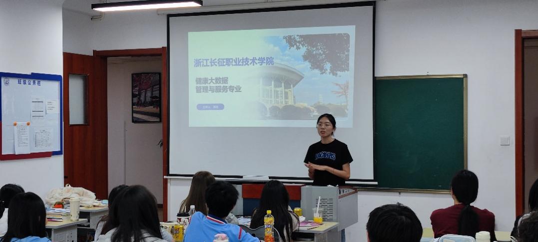 在专业宣讲环节,潘玥围绕健康大数据管理与服务专业的核心优势,向同学们系统介绍了专业办学特色、师资配置、课程体系及职业发展前景。其中,针对五年一贯制培养模式,她重点讲解了该专业在“中职—高职”知识体系衔接、技能水平提升等方面的优势。同时,她还针对学生普遍关心的课程内容侧重点、未来就业方向、行业发展趋势等问题,进行解答与互动。